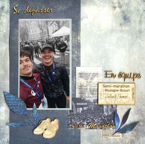 J'ai utilisé les papiers de la collection "Une pointe de rouille" d'Embelliscrap. Le fond de la page est réalisé avec les papiers "mur décrépi" et "gris muraille", parfaits pour aller avec l'amb...