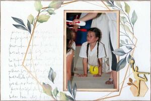 Suite d'un début d'album 20 par 30 cm, sur les années de Gymnastique rythmique de ma fille. Papier de fond "Cadre hexagone et bouquets de feuillage", sur lequel je découpe quelques feuilles pour le...