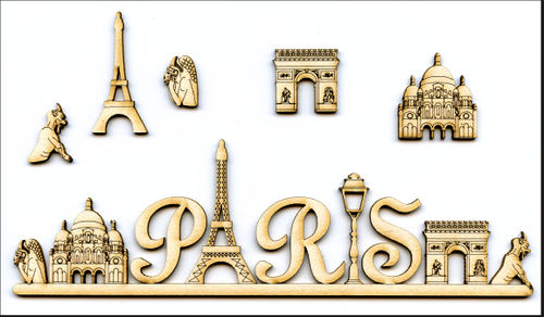 Mot Paris Illustré, avec les Monuments Parisiens, en Carton bois