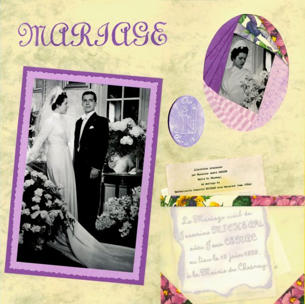 Une page très soble pour mettre en valeur ces magnifiques photos de mes grands-parents, le jour de leur mariage, il y a 68 ans !!!