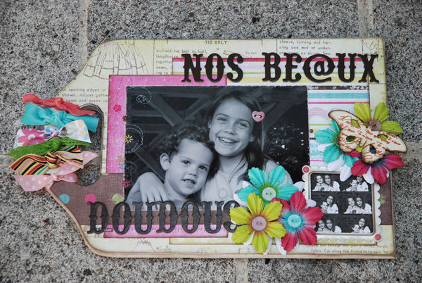 | Planche à découper, scrappée avec une jolie photo de mes doudous, offerte à ma maman pour la fête des mères