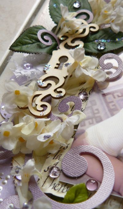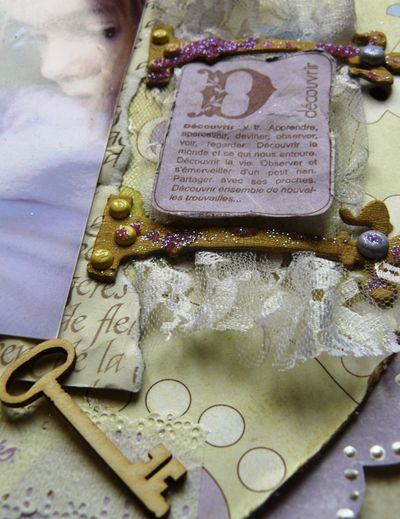 Coté technique j'ai adoré l'étiquette transparente gravée si parfaite ici et je me suis contentée de "rouiller" ma serrure avec du stickles violet.