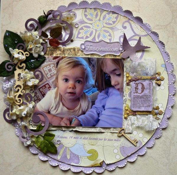 Cette page est défi que m'a lancé une amie, faire une page shabby avec cette photo, ce qui ne fut pas chose facile.