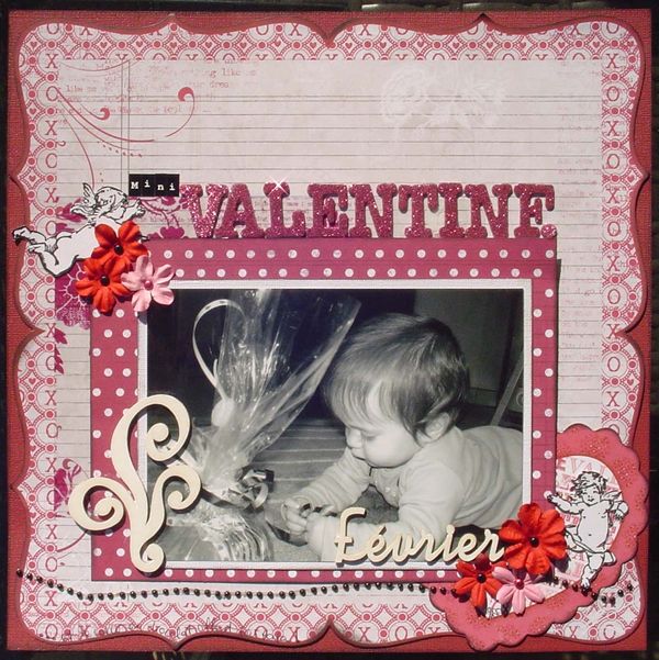J'adore ces grands volutes en carton-bois ! Celui-ci a été peint à l'acrylique blanche, tout comme le mot février, pour apporter de la lumière à la page.