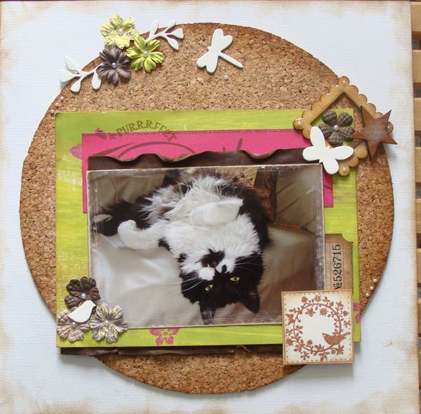 | Une page réalisée pour la DT "Les Hobbies de Lila" et alliant différentes matière comme le cuir, le liège, le carton.