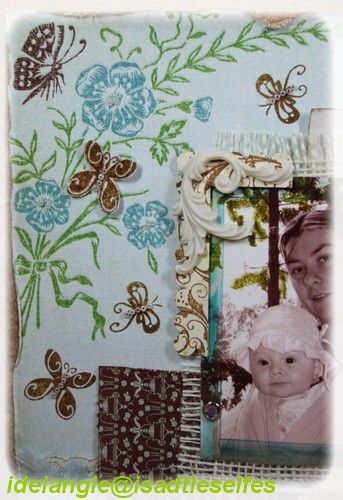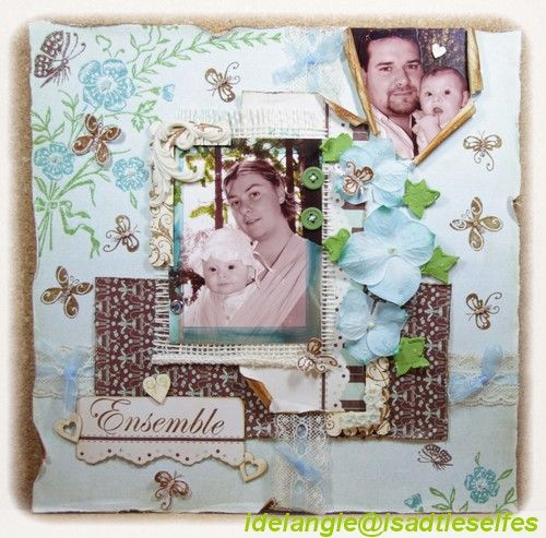 Voici une petite page faîte pour un concours , j'ai utilisé les tampons de la compagnie des elfes, j'ai ajouté des embellissements d'embelliscrap et mes petites décos en porcelaine à froid , quelques fleurs et perles .