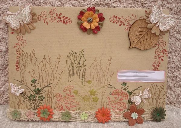 | mail art réalisé sur une enveloppe kraft avec utilisation de la technique du cache
