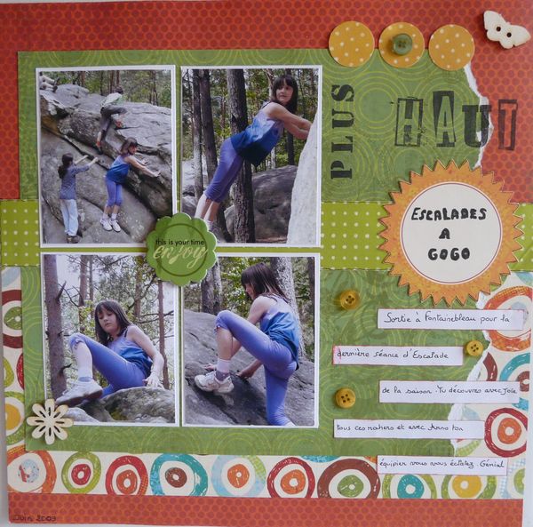 Papiers et chipboard Scenic Route , tampons , boutons divers , papillon et Fleur Embelliscrap (rajouté hors Crop pour le petit + de finition ! ) , un peu de Journaling .