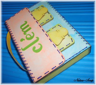 | Toutes les faces sont encrées et c'est relié avec du fil DMC mauve.