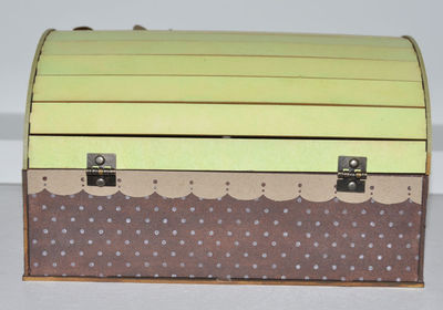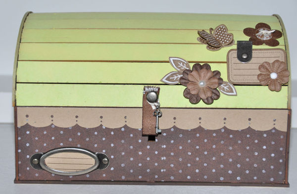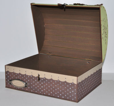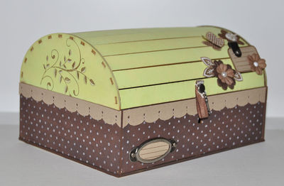 Utilisation des encres Versamagic brune et verte claire pour peindre chaque partie du coffre avant montage.