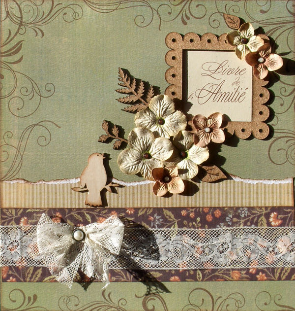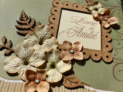 Voici la page de garde du livre d'or d'une maison d'hôtes, joliment intitulé "Livre de l'amitié". La propriétaire des lieux souhaitait quelque chose de "nature"... Quoi de mieux que ces jolis embellissements en liège pour combler ses désirs !