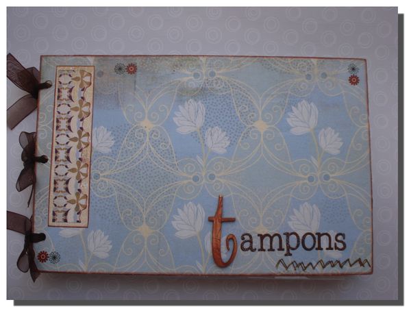 | J'ai tamponné avec un tampon arabesque, puis encré le "t" du mot "été", et je l'ai utilisé comme initiale du mot tampons...