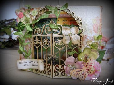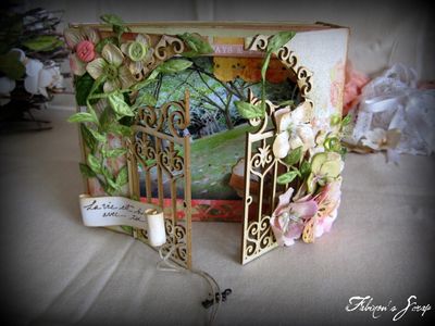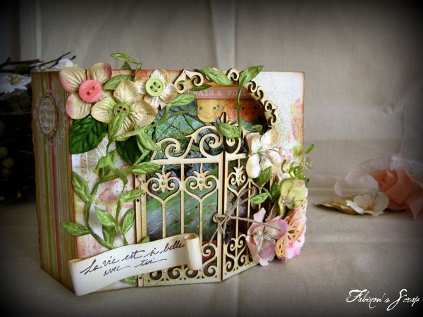 un mini album dont la couverture s'ouvre en deux parties, et est réalisée à partir du portail en carton EmbelliScrap.