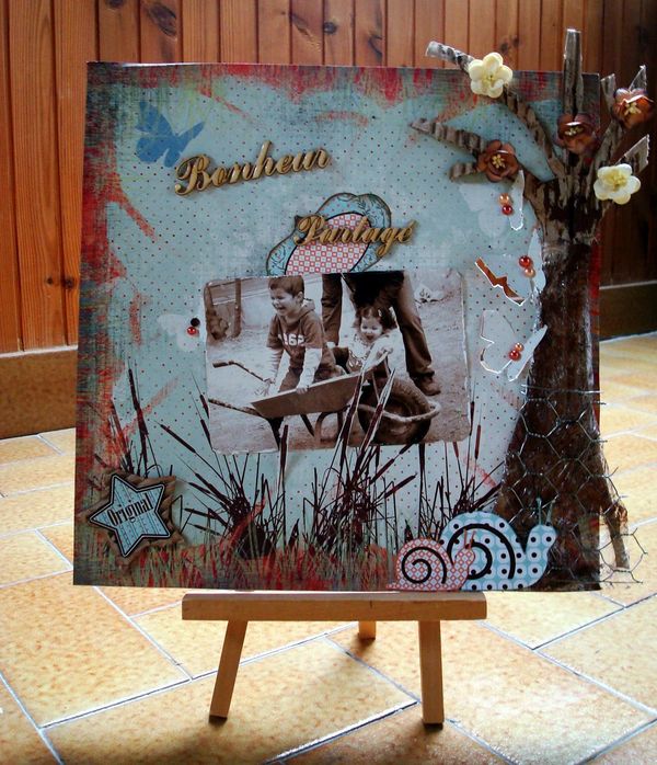 arbre avec du carton de récup recouvert de cellophane peint. |