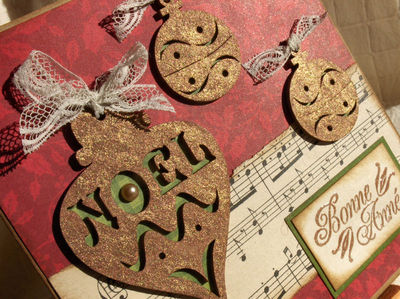 Les boules en carton-bois ont été passées au Glimmer Glaze (encre brillante conditionnée en petit flacons type vernis à ongles) afin de leur donner un côté festif !