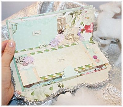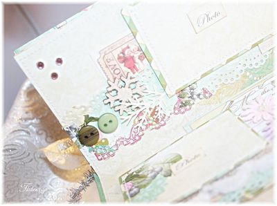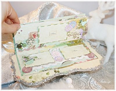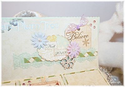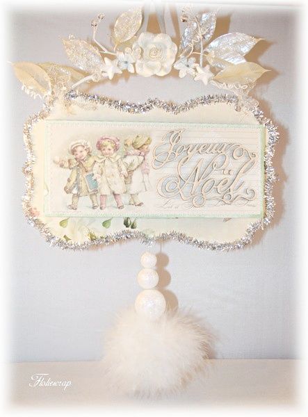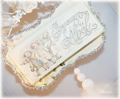 Mini album sur suspension avec mot "Joyeux Noël" et flocons recouvert de paillettes.