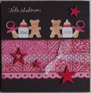 voici une autre carte naissance "fille" les oursons sont coloriés à la distress et à l'encre palette "sèche" ainsi que les étoiles...