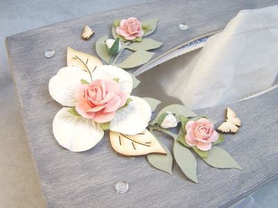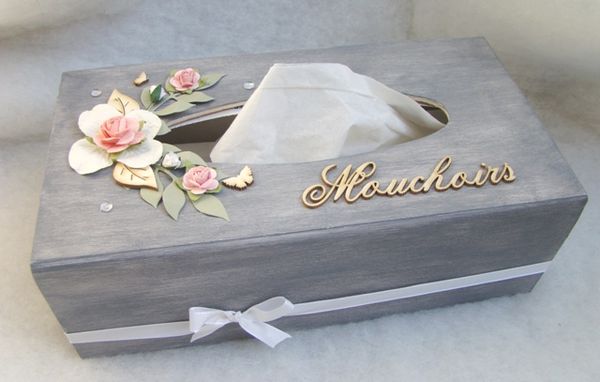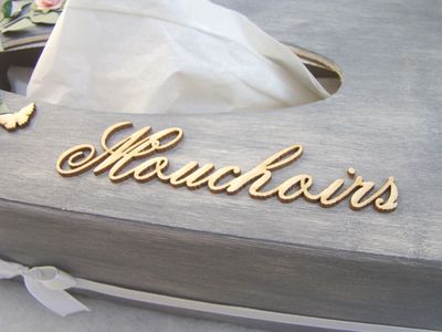 Une tite boite à mouchoirs, façon shabby clean... avec des produits en carton bois.. que j'adore ! |
