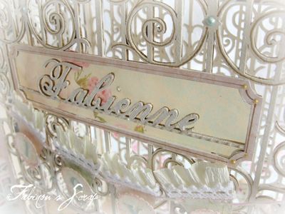 Aux emplacements des prénoms, délicatement ciselés, j'ai collé du papier vellum imprimé, pour décorer et garder cette jolie luminosité.