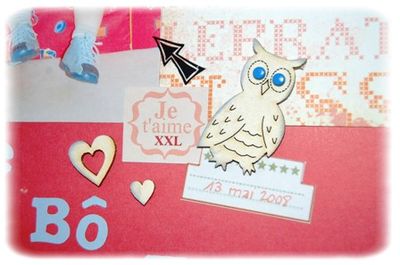 j'ai utilisé un petit hibou en carton bois et des coeurs.