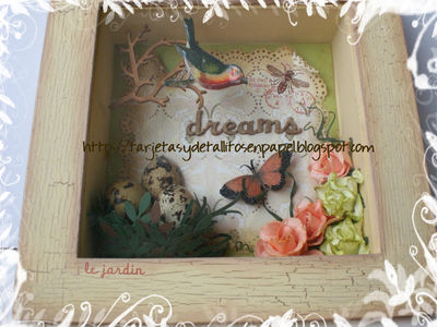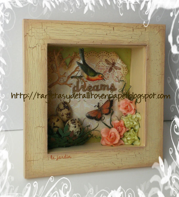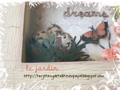 | I want to make an decorative object for my new home. So, I did this vintage shadow box using products of Embelliscrap such as: branches and felt letters (dreams).