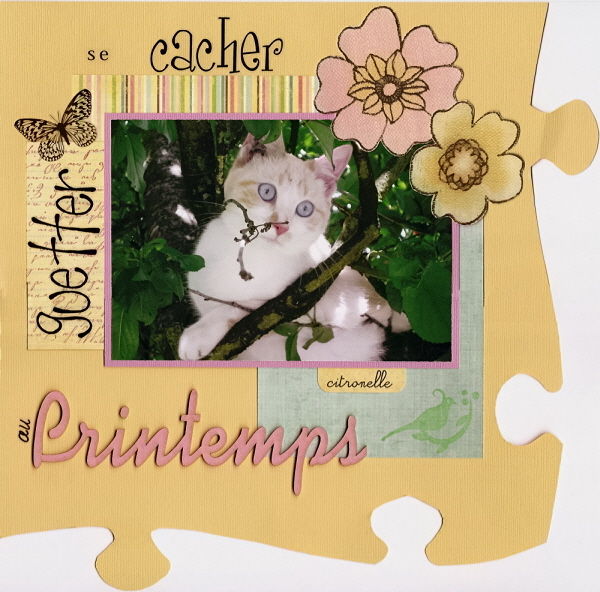 J'ai utilisé le mot "printemps" en carton bois, j'adore toujours utiliser ces mots prédécoupés.