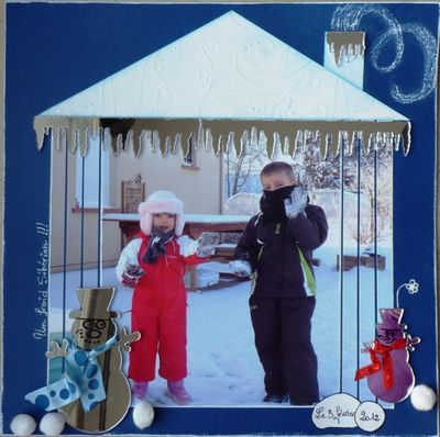 | Les flocons, les stalactites sont des embelliscraps, quant aux bonshommes de neige, je les ai trouvés chez Noz'... |