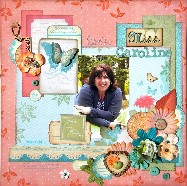 Ses pages et réalisations sont de style shabby coloré et fleuri (et oui, j’adore toujours autant le shabby !!! ). Elle aime les papiers imprimés, les fleurs, les embellissements... Elle sait à merveille utiliser chaque petit dessin d’un papier imprimé pour le transformer en décoration. Elle adore jouer avec les mousses 3D et les embellissements pour scrapper tout en relief ! Ses réalisations fourmillent de petits détails et sont toujours très colorées et gaies, pour notre plus grand bonheur.