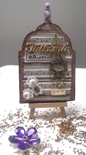 Au dos j'ai écris le mot "HALWA" qui veut dire gourmandises en arabe avec du cern et j'ai ajouté des paillettes. |