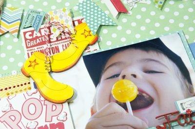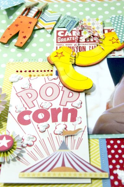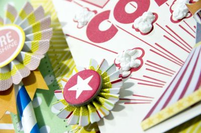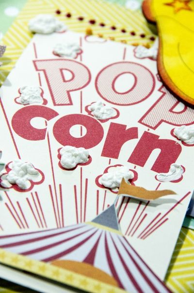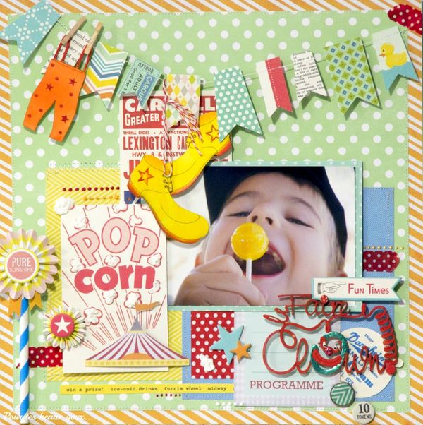 Pour l'effet "popcorn", il s'agit de peinture Tulip Puffy, blanche. Il suffit de déposer quelques gouttes, et chauffer avec votre pistolet chauffant pour l'embossage. (les éléments EmbelliScrap ont été coloré avec de l'encre (cat's eye colorbox) et liquid pearl par touche)