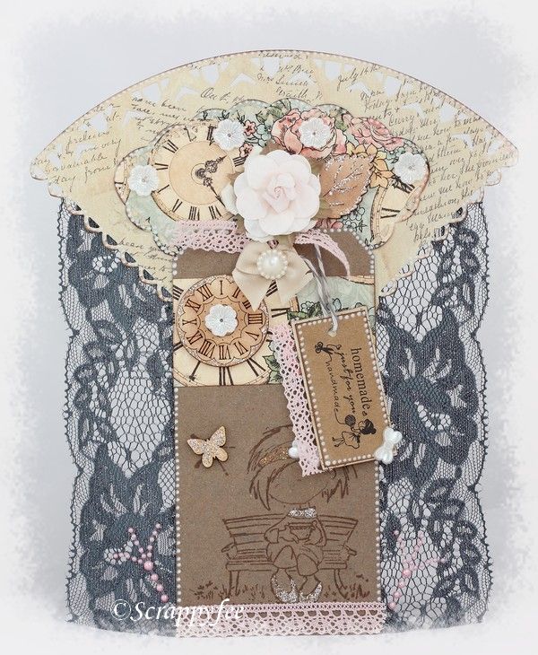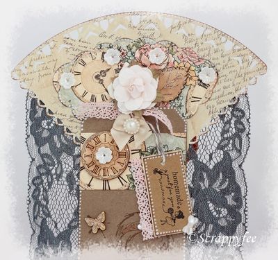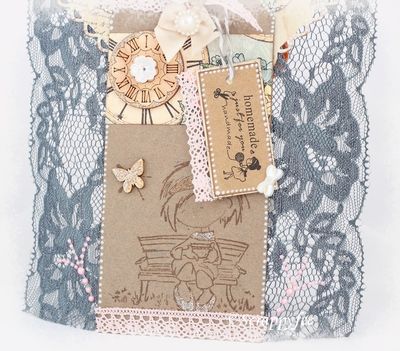L'horloge, le papillon et la feuille en carton bois sont encrés, puis pailletés au stickles!