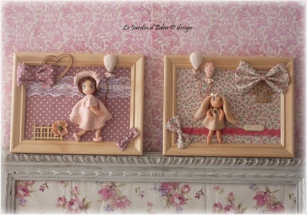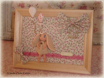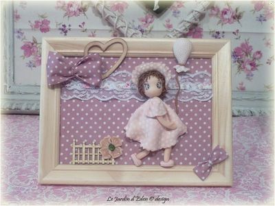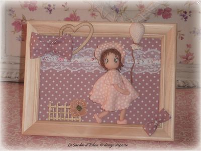 le fond du cadre est habillé de tissus anglais vieux rose à pois et liberty