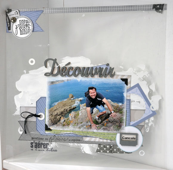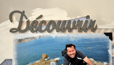 Titre "Découvrir" Embelliscrap recouvert à la peinture acrylique ainsi que l'étiquette.