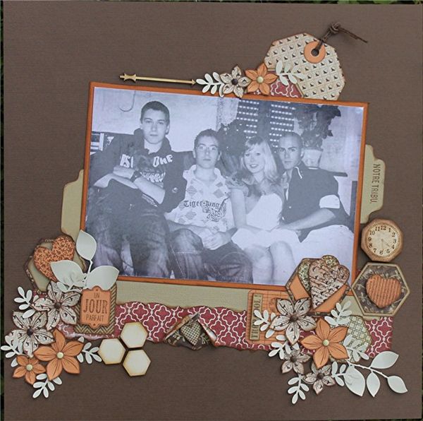 Une photo vieillie avec nos enfants et gendre.... couleur automne.. l'horloge est passée à la distress vintage photo.