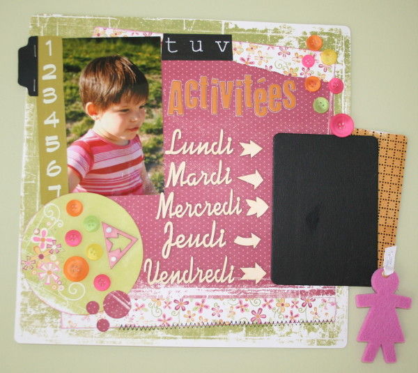J'ai pensé à ce petit tableau mémo, les 5 jours de la semaine sont repris (et oui, en belgique nous avons école le mercredi et pas le samedi), il me restera une fois que j'aurais son horaire, à l'inscrire à la craie sur le petit tableau noir réalisé avec un carton de bière et de la peinture pour tableau.