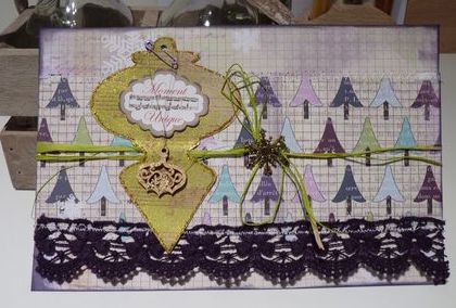 pour cette carte de noël, je me suis amusée à mettre sur la déco boule en bois de la feuille d'or par petite touche, j'aime beaucoup l'effet