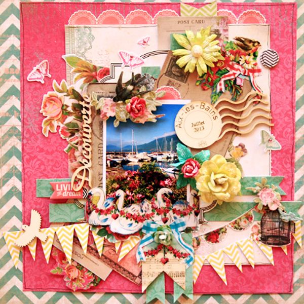 En utilisant "cachet de la poste, avec la date, en carton bois"; "Les Petits Mots du Voyage" et "volées d`Oiseaux"