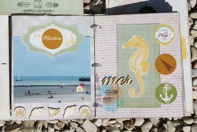 Les POC, les rubans, les embellissements miroir, carton bois et transparent ne manquent pas sur le thème de la mer et de la plage... de quoi décorer un mini sur ce thème estival.