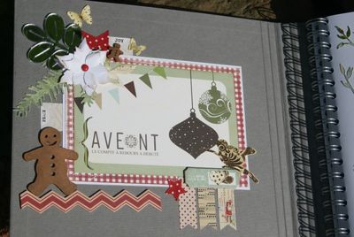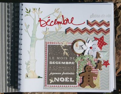 Voici un album prêt à recevoir nos souvenirs du mois de décembre et les préparatifs des fêtes de Noël. Les feuillages en miroir apporte une touche brillante sur la couverture. A l'intérieur, les premières pages accueillent de jolis bonhommes "en pain d'épice".
