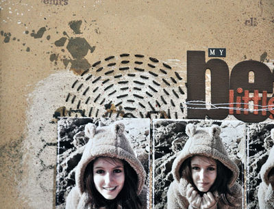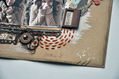 Un léger fond de Gesso, une touche de Pchiit sur le pochoir Nid d'Abeille et de la couture avec le pochoir cercle.