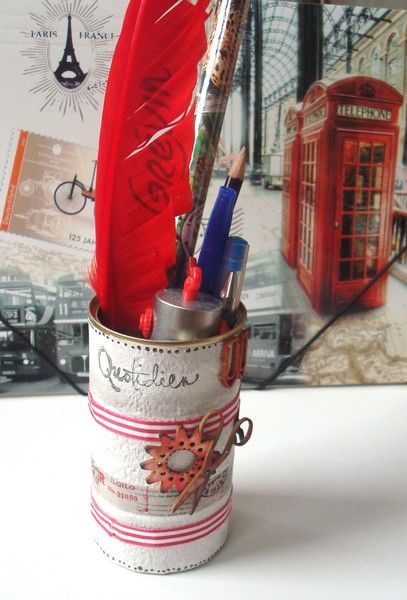Du masking tape, du ruban, tampons.Le carton bois est encré... |