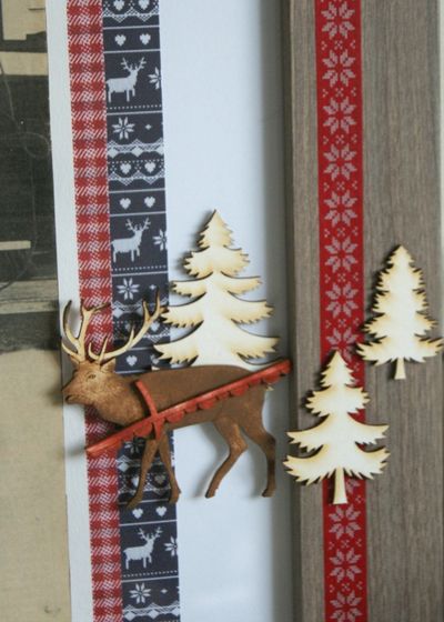 Des embellissements en carton bois pour une ambiance nordique sont collés directement sur la vitre de ce très grand cadre aux allures scandinaves.