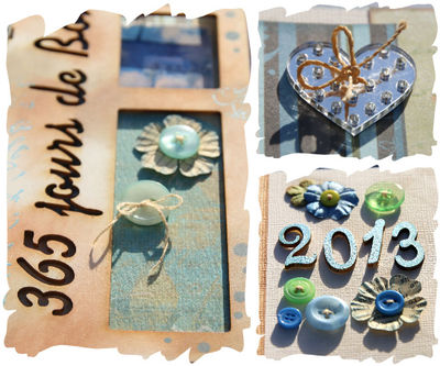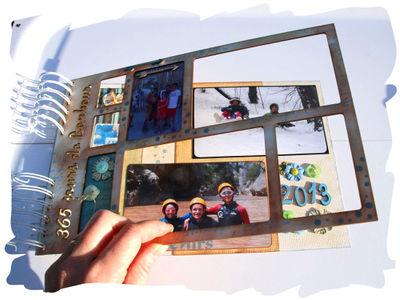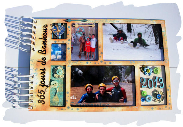 Pour bien commencer la nouvelle année, je me suis lancée dans un Project life de l'année dernière !!! Oui, oui, je sais, ce n'est pas ça le principe ! Mais je trouve agréable de revenir sr les photos de l'année passée et d'en extraire, avec le recul, les souvenirs les plus marquants !! J'ai joué à coller certaines photos et décos sur le dos de la couverture. Les autres photos et décos sont sur la page intérieure. Ainsi, en ouvrant l'album, cela fait un bel effet ! Les photos sont toujours découpées avec 4 mm de plus que les trous de la couverture. La couverture en carton bois est encrée avec des cut and Dry, pour l'effet usé, puis avec des pochoirs et tampons ! Quelques embellissements et le tour est joué !