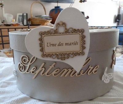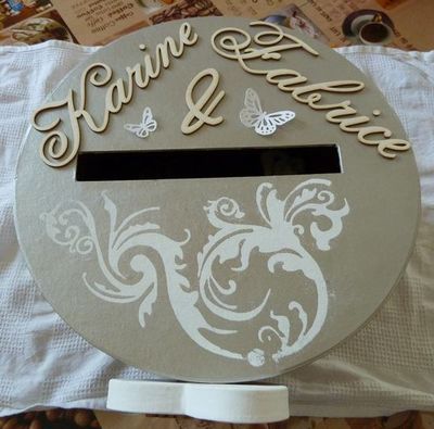 J'ai enfin décoré avec le prénom des mariés et la date du mariage avec des mots à la demande et une plaque personnalisable que j'ai collé sur un cœur en papier maché.