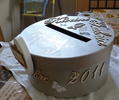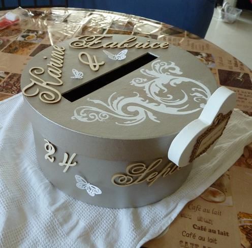 C'est une simple boite à chapeau que j'ai peint à la peinture acrylique argent.
