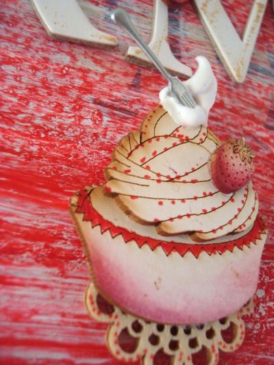 Superposition de carton bois, encrés, peints...pour les cup cakes. |