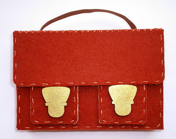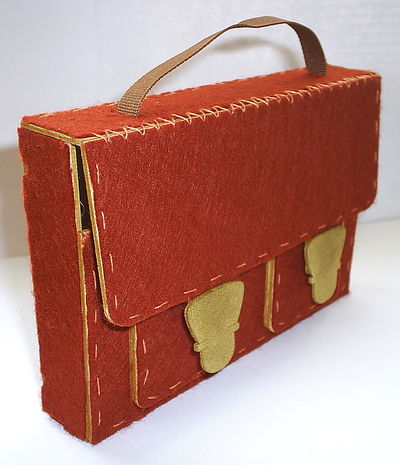 J'ai recouvert l'album de feutrine marron puis j'ai cousu comme il fallait. Après plusieurs piqures d'aiguilles (aïe !) et des prises de tête interminables ( grrrr !) pour trouver tous les trous voici le résultat. J'ai aussi embossé à chaud en doré les attaches pour un effet plus réel. Manque plus qu'à y insérer des photos de classe.