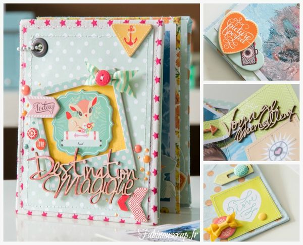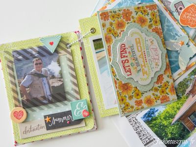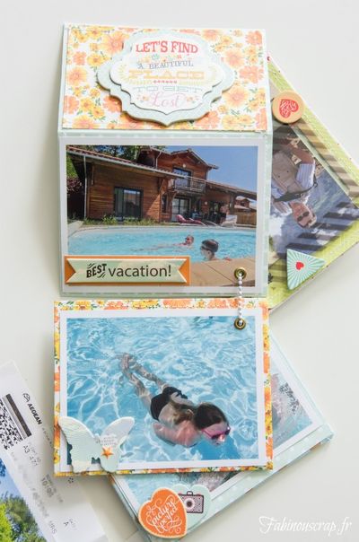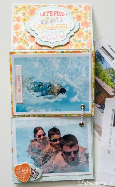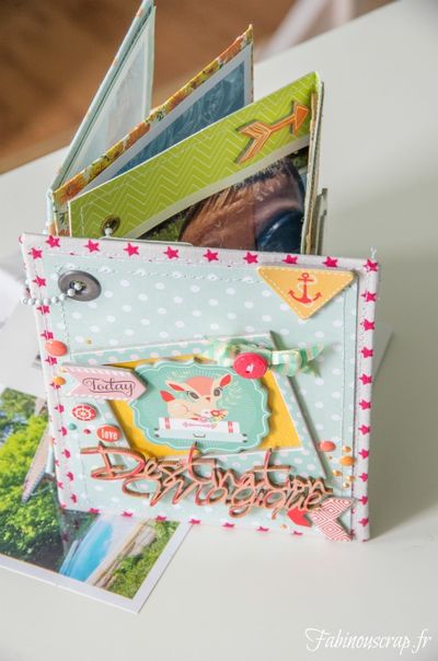 Un mini-album, chipboard, de construction très simple: couvertures avec tissu, quelques pages du même format que mes photos, et quelques photos estivales!