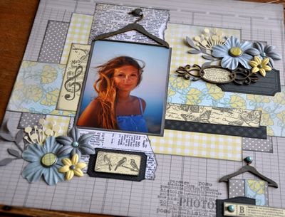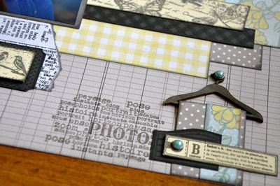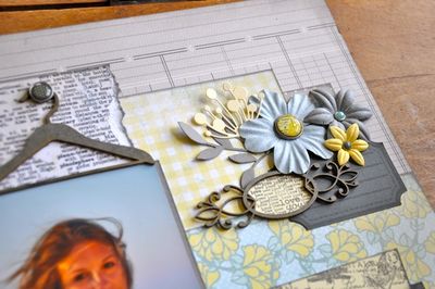 J'ai légèrement teinté les embellissements avec de la Versafine smoky gray pour les coordonner avec les couleurs de ma page.