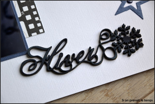 Pour cette page, j'ai utilisé les nouveautés de février 2015 "Hiver" et l'étiquette en carton bois que j'ai personnalisée avec mon texte.